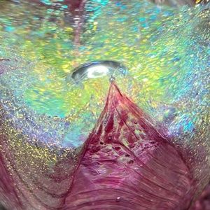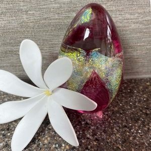 Stunning pink and gold, blue blown glass egg from the Art Gallery of Algoma in Sault Ste Marie