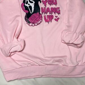 Pink hoodie featuring a graphic Scream design with a phone motif.