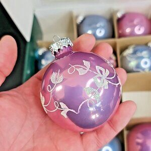 Pink Gray Round 14pcs Christmas Ornaments Baubles Glass Canada 2001 Vintage