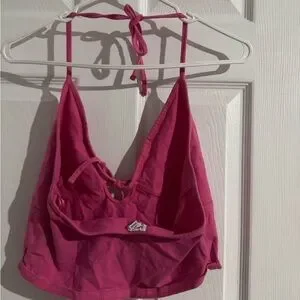 Stylish pink halter top with a tie at the neck. Perfect for casual outings.