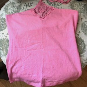 Brand new condition, never worn. Pink halter top with built in bra by Moda International. Purchased this top brand new from Victoria's Secret online. Material is 95% cotton with some stretch. Crochet design on front. Ties at the neck. Smoke-free home. Reasonable offers always considered. ☺