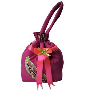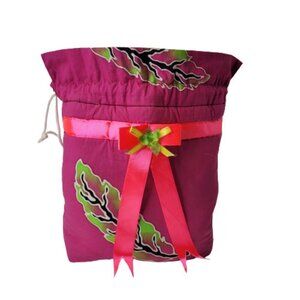 Pink Hand Made Hand Painted Batik Cotton Drawstring Fabric Hobo Tote Bag