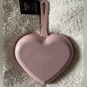 Gorgeous pink heart shaped 🩷 cast iron skillet. 9 inches and can be heated up to 450 degrees.