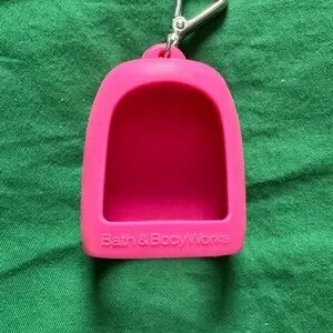 Stylish pink Bath & Body Works Pocketbac for holding your hand sanitizer featuring a heart design with sparkling rhinestones. Perfect for adding a touch of glam to your accessories.