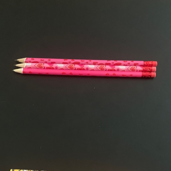 Set of pink pencils with heart patterns. Perfect for school or office use.