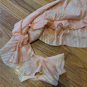 Stunning pink iridescent skirt with ruffle details. Perfect for a night out.