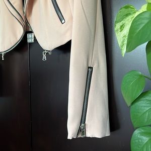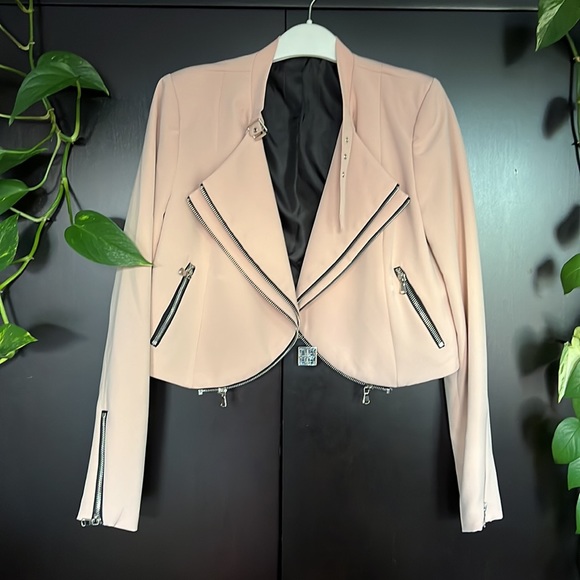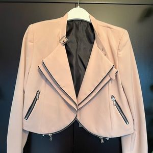 Pink waist jacket with zipper and clasp neck closure detailing. In great condition.