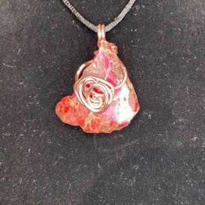 Pink Jasper Chunk Rosegold Wire Wrapped Pendant Handcrafted
