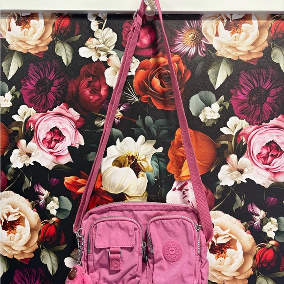 Like new pink Kipling cross-body bag. Lightweight and amazing for travel! Includes the matching signature Kipling monkey. Key leash and many, many pockets. Measure about 10”x7”x1.5”.