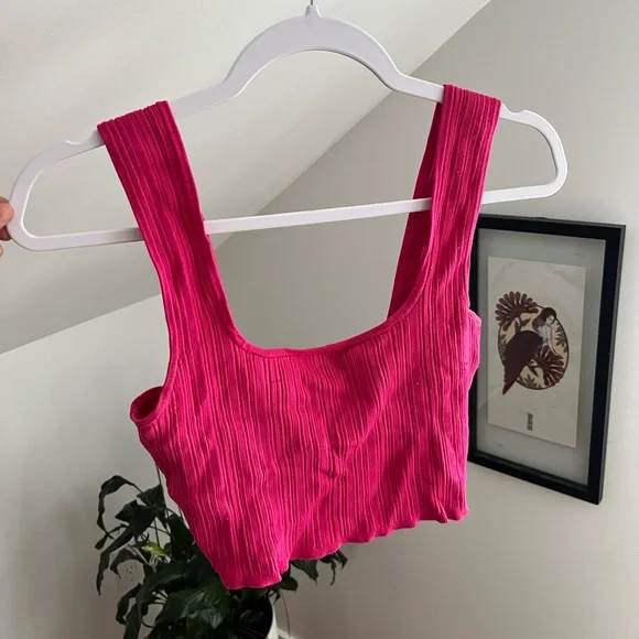 Stretchy bright pink knit top Pet friendly home - please note that all items are washed and lint rolled before I ship.