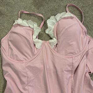 Pink Lace Trim women’s One Piece swimsuit