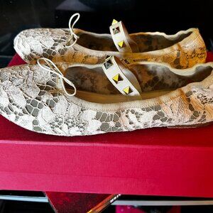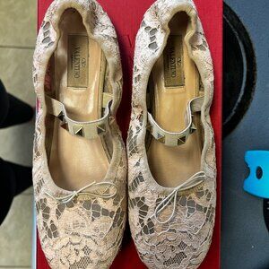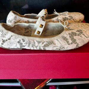 Pink Lace Valentino Garavani Rockstud Ballerina Flats. Size 38 1/2