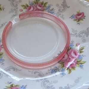 Dainty pink bangle with unique leaf brining pattern. Colour by Amber brand.