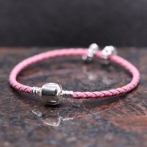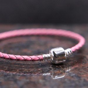 Pink Leather Bracelet with Sterling Silver Barrel Clasp - BRAND NEW