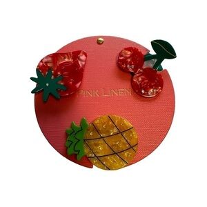 Fruit Medley Hair Clips By Pink Linen, Set Of 3 - Strawberry, Cherries & Pineapple Adorned With rhinestones.