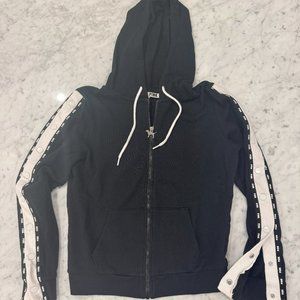 Pink Long Sleeve Zip-up Hoodie Sweatshirt with Button-up Arms