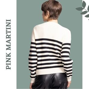 Pink Martini Crew Neck Sweater Pullover Button Detail Stripe Cream Black Size XS
