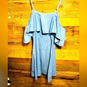 Pink Martini Denim/Chambray off shoulder spaghetti strap mini dress excellent condition S. perfect for a festival , shopping, party or accesorize it for a boho style prom outfit.