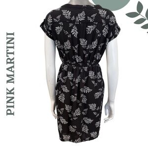 Pink Martini Drawstring Waist Summer Dress | Black White Floral | Size Small