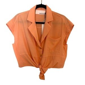 Pink Martini Kalina Top- Orange Tie Front Cropped Blouse- Size XS