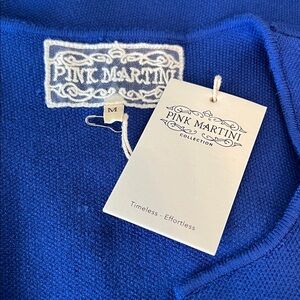 Pink Martini “Moira” Royal Blue Open Face Cardigan Sweater Size M NWT
