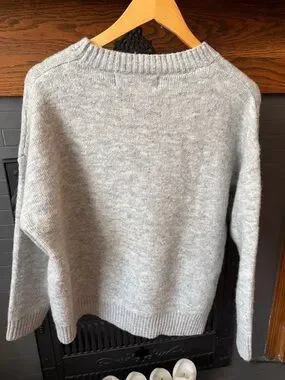 Soft gray crewneck sweater with a large white heart on the front. Ribbed neckline, cuffs, and hem. Comfortable knit for everyday wear. Simple, chic design for casual styling. Size tag says XXS, but this is a medium, for sure. Great condition!