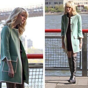 Effortlessly stylish and undeniably chic, this tailored duster from Canadian label *Pink Martini* channels the elegant, slightly offbeat aesthetic of Gwen Stacy in *The Amazing Spider-Man 2* โ think vintage flair, modern lines, and serious main character energy.