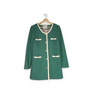 Beautifully structured yet easy to wear, this fully lined coat is crafted from a soft, warm wool-blend that holds its shape while offering a comfortable drape. Cream contrast trim and brushed silver buttons elevate the collarless silhouette, creating a sleek and refined look.