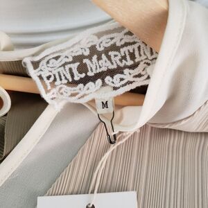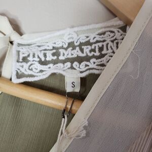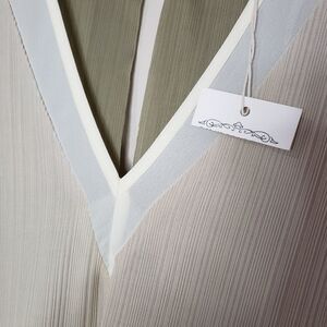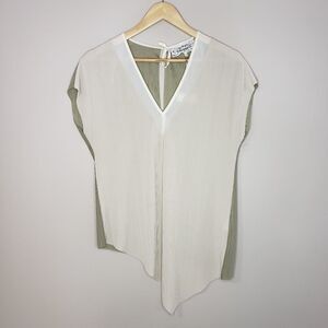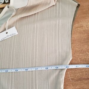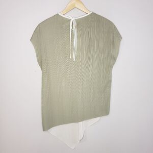 Pink Martini NWT Sleeveless Beige Green Asymmetrical Ribbed V-neck Top