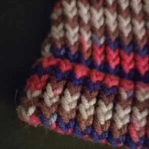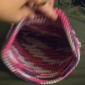 Vibrant acrylic piglet like beanie with a mix of hot pink, purple, and baby pink. Perfect for cool Summer Evenings, Fall and Winter.