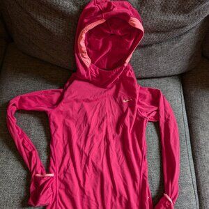 Pink Nike Running Dri-Fit Long Sleeve Top — Zip pocket, hood, convertible mitts