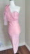 Never worn (no tags). Stunning bodycon fit in a soft blush pink with a layered tulle bow detail on one shoulder. Elegant, feminine, and perfect for weddings, engagement parties, or cocktail events.