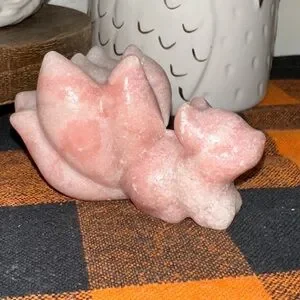 Add a touch of whimsy to your home with this charming pink Opal kitsune. Its soft pink hue brings a playful yet elegant accent to any room.