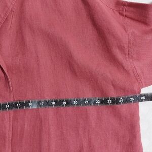 Eileen Fisher Organic Linen Open Front Jacket Large Coral Oversized Relaxed Fit Patch Pockets