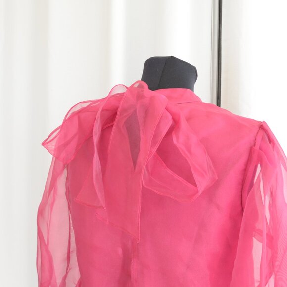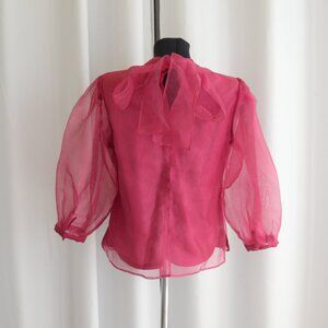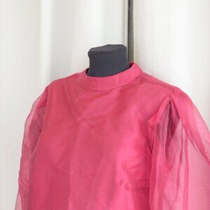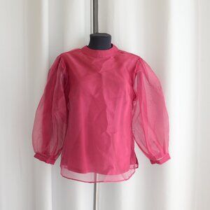 Pink Organza Semi Sheer Puff Sleeve CeCe Top Sz S