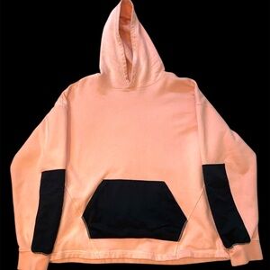 Add a bold touch to your wardrobe with this pink PacSun hoodie featuring a unique black patch on the center pocket and matching black patches on the sleeves. Comfy, stylish, and perfect for layering. Great for casual wear or streetwear fits! Large but also fits a medium.
