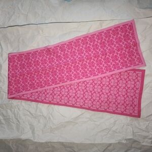 Stylish pink scarf with a unique pattern. Perfect for adding a pop of color to any outfit.