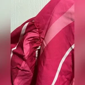• Pattern: Bold abstract/swirl print in shades of fuchsia, rose, and light pink.