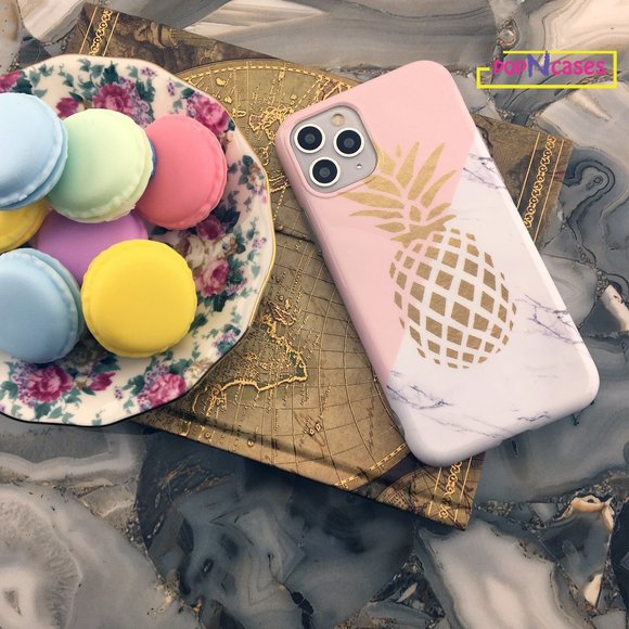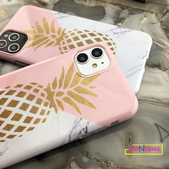 ♕ Fashionable Pink & White Marble Case with gold pineapple
