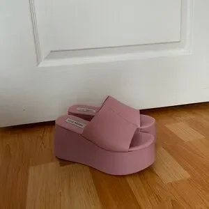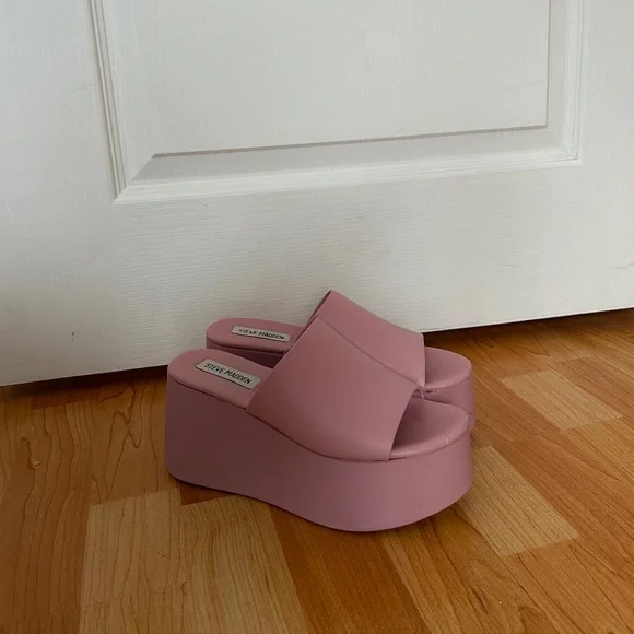 Steve Madden pink platform sandals - fabulous shoe for summer! Size 6, fits true to size. There is some scuffing on the shoes, as pictured, but not super noticeable when wearing.