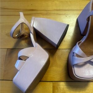 Step out in style with these chic pink platform sandals. Perfect for any occasion, these shoes offer both comfort and elegance. Only worn once !