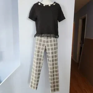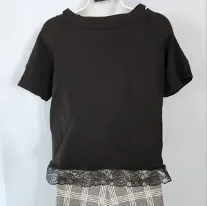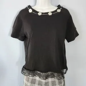 Cute lace edge top by Pink Poodle. Size and composition tags were previously removed. Size was determined by measurements.