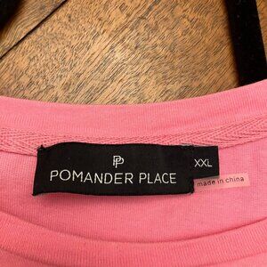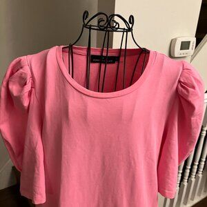 Pomander Place fun pink dress with puffy sleeves. Cotton, kind of a thick t-shirt. Excellent color--more subtle than Barbie pink, more vivid than Millenial pink. NWT, plus size.