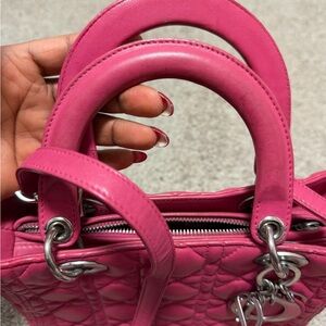 Christian Dior stylish pink quilted handbag with silver hardware. Perfect for adding a pop of color to any outfit.