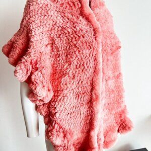 Pink Rabbit Fur Woven Triangular Shawl Scarf Wrap.