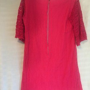 Vintage Pink Raspberry Boho Mexican Mod Pintuck Cotton Dress Crocheted Sz S/M
