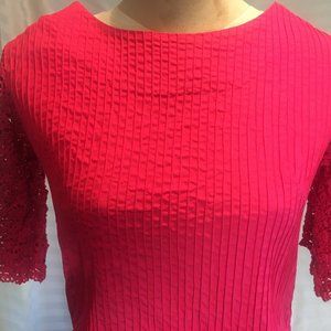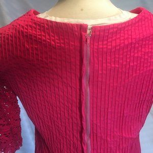 Pink Raspberry Boho Mexican Mod Pintuck Cotton Dress Crocheted Sz S/M Vintage