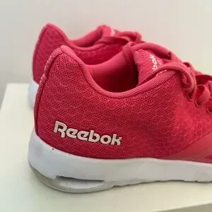 Bright pink Reebok runners in size 8. Cute colour with a solid white sole. Comfortable ortholite model that can be work both casually or as a running / athletic ahoe. In a good pre-loved condition, has been occasionally worn. Associated signs or wear, such as minor marks and scuffs can be cleaned up.