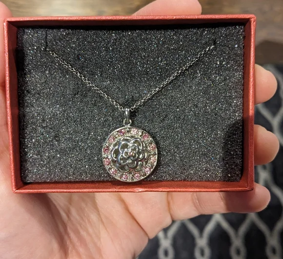 Bought from Avon years ago. In really good condition. the chain is about 15cm, closed (30cm open). Locket still opens and closes well, will come in the box. .