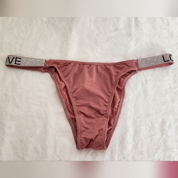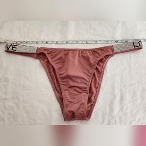 Rose Pink Bikini Style Panty Underwear with Stoned Crystal 'Love' sides.